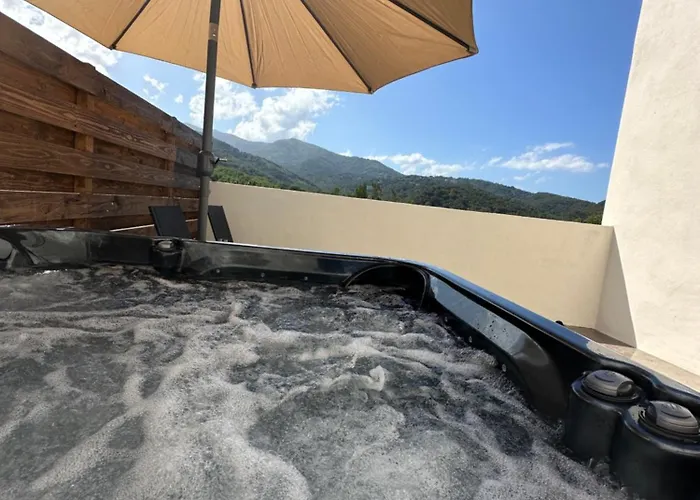 דירת Bergerie Avec Spa Vue Montagne מציעה אזור מטבחון מאובזר וכמו כן גם חדרים עם מרפסת, ציוד להכנת תה וקפה וטלוויזיה עם מסך שטוח וערוצי לוויין. האורחים ימצאו את פארק גלאה בפחות מ-7 ק"מ וMoriani-Plage בפחות מ1.2 ק"מ משם.
